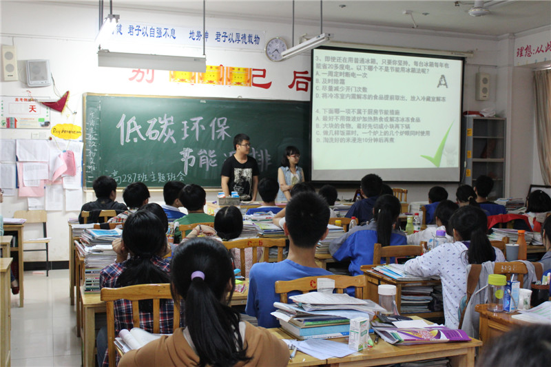 为响应桂林市“美丽桂林,城乡清洁”活动的号召,并积极结合广西师大附中“师生文明素养提升行动”要求,我校高287班于23日在教室举行了以“低碳环保,节能减排”为主题的班会展示活动,参加观摩课的有分管德育处的王忠英副校长、高一高二班主任以及德育名师工作室成员。