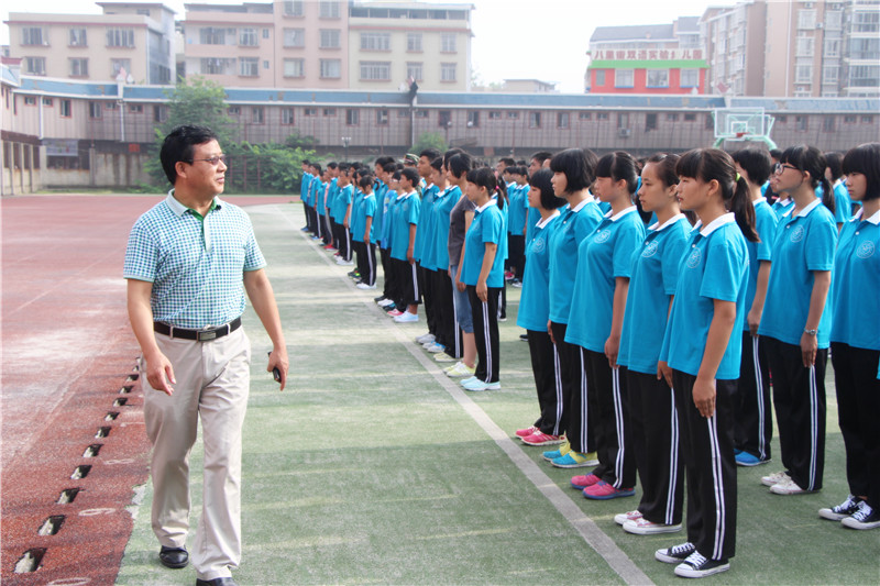 当刘校长看到同学们的站军姿练习后给予高度的评价,他说,军姿很标准,队伍横排竖排都很整齐,有了很大的进步。希望大家坚持顺利完成明天的会操。