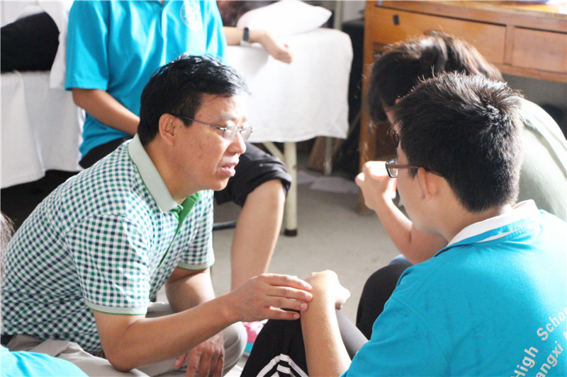 随后他又走进医务室慰问生病的学生,同他们亲切握手,仔细查看伤情,鼓励他们配合治疗、安心养病,并对他们这种没有放弃坚持训练的精神给予鼓励和表样。