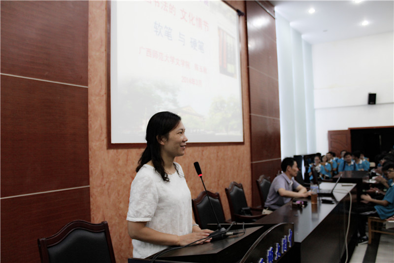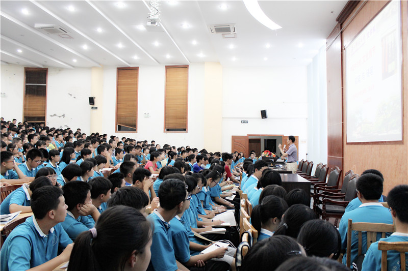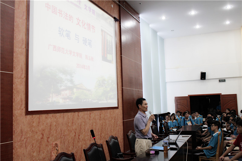 讲座中,陈玉秋教授以自己多年来担任广西高考语文评卷组长的经历,阐述了高考中书写的重要性。首先,他以2013年广西语文高考状元我校高三毕业生钟虹谷同学为例,指出高考语文取胜的两大抓手,即一抓书写,二抓阅读。接着,陈教授还就书法在我国历史文化上的重要性及书法在全国中小学推广的现状作了精彩的演讲。陈教授在演讲中旁征博引,娓娓道来,极大地激发了同学们学习书法的热情。最后,陈教授针对中学生如何练好硬笔书法做了详细讲解,着重介绍了自己研究的硬笔书法“三步曲”独特的练习法。同学们听后反响强烈、收获颇丰,此次讲座取得了圆满成功。
