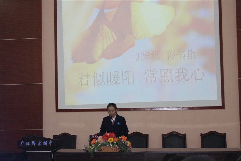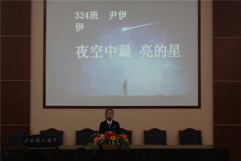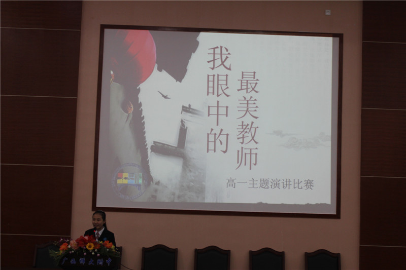 2016年10月28日,我校在阶梯教室举办了高一年级演讲比赛,高一每班各派出一名代表参加。王忠英副校长,莫锦华老师,古芬老师,蒋霖老师出席担任本次比赛的评委。