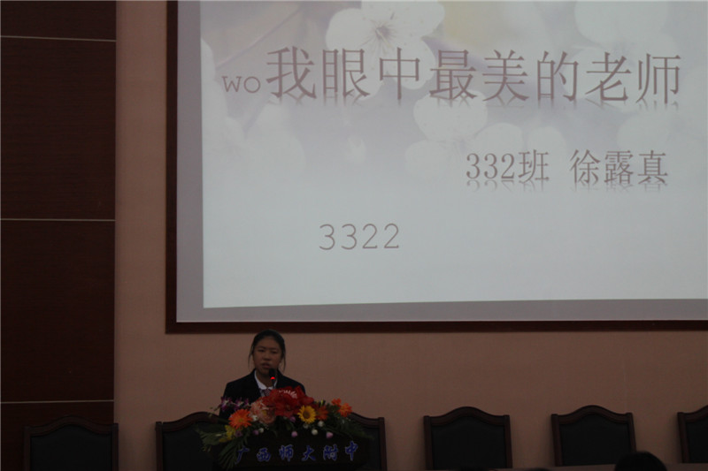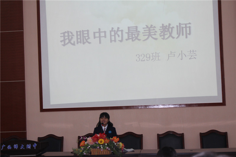 作为以高一年级同学为主体的第一次大型比赛,参赛选手们都做好了充分的准备。选手依次上场,围绕“我眼中的最美教师”这一主题各抒己怀,给观众们带来了一场精彩纷呈的听觉盛宴。选手们将感人肺腑的教师事迹娓娓道来,并热情洋溢地赞美教师,感恩为教育事业辛勤付出的园丁,令在场观众和评委无不为之动容。演讲完毕后,莫锦华老师作了精彩点评,比赛在热烈的掌声中圆满结束。