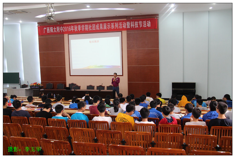 2016年11月18日下午,我校科技节开幕式在阶梯教室举行。开幕式上先是回顾了在过去一年当中我校在科技创新方面取得的成绩,接下来王华奇副校长和科研处张小雄主任发表了热情洋溢的讲话,鼓励同学们积极投入科技创新活动。