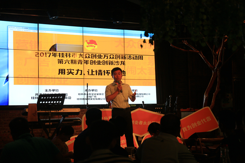2017年9月21日下午,由共青团桂林市委员会、桂林市发展和改革委员会共同主办,桂林市青年企业家协会、桂林赛魔地文化有限公司、万福广场承办的“回归创业主题分享沙龙”在万福广场胡桃里音乐餐厅举行。活动参考TEDx(TED大会,即以Technology技术, Entertainment娱乐,Design设计,为主题的分享活动,来自各个领域的分享者,提供高品质的分享内容。TEDx是在全球各地参考TED风格和形式组织的活动)的形式组织,邀请3位拥有创业经历的嘉宾围绕“创业”进行主题分享。同时邀约50位各行各业的创业者,通过现场交流、分享、评分等方式,激发互动,让创业者找到共鸣,让“创业”热情得到绽放。