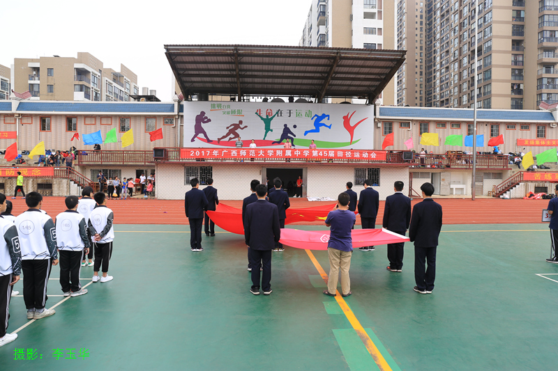 2017年9月29日上午,广西师大附中第45届田径运动会开幕式在田径场隆重举行。开幕式由德育处潘春林主任主持,李林波校长、王忠英书记和王华奇副校长出席了本次开幕式。