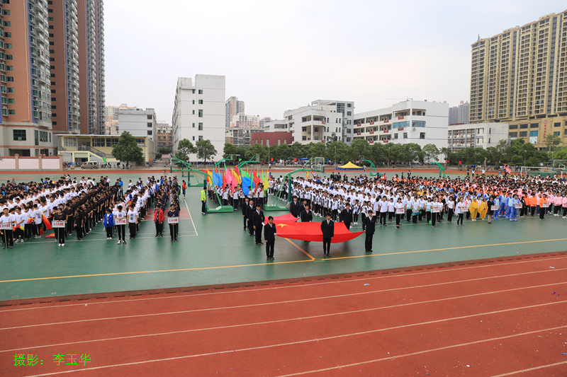 开幕式第一项是入场式,各班方阵整齐有序地走向主席台,随后进行了富有班级特色的队列表演。入场式结束后举行了庄严的升旗仪式,接下来是运动员代表与裁判员代表宣誓。最后,李林波校长发表了热情洋溢的校运会致辞,随后,校运会在李校长的一声令下正式开幕。