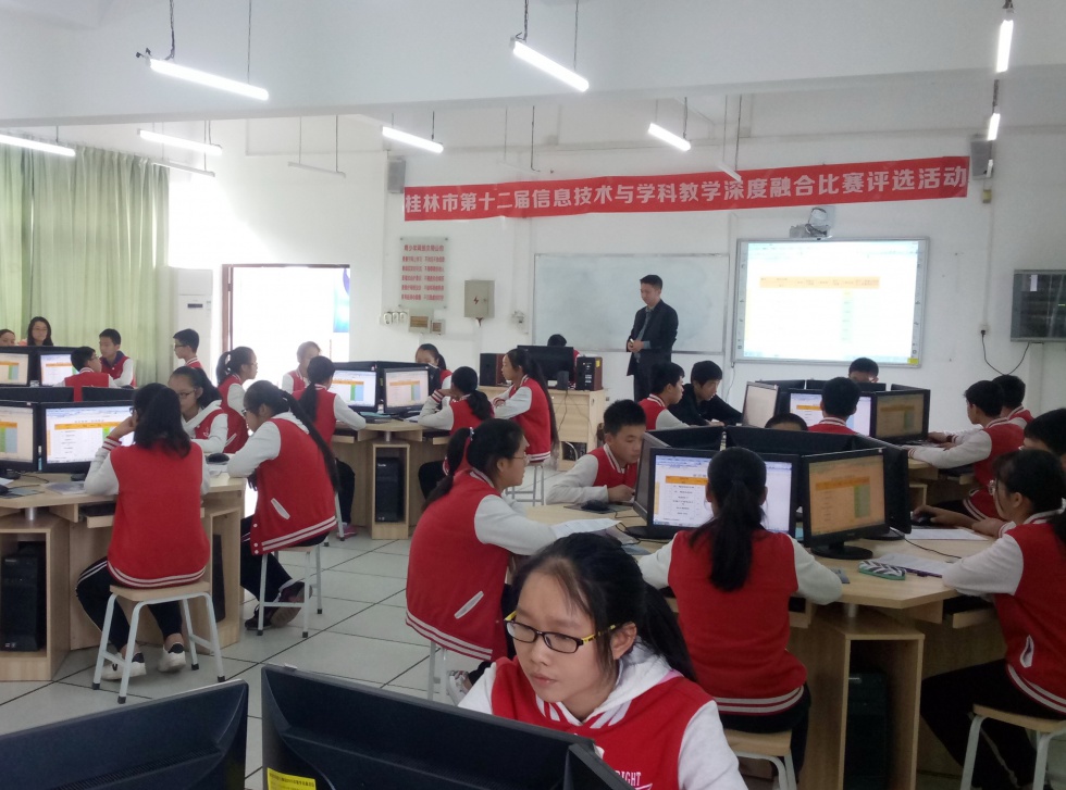 2017年11月7日至11月8日,桂林市举行2017年信息技术与学科深度整合比赛课在桂林市名族中学和田家炳中学举行,我校李玉华老师担任信息技术学科的评委组组长。