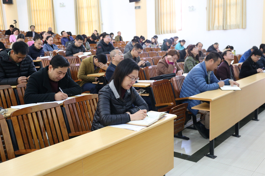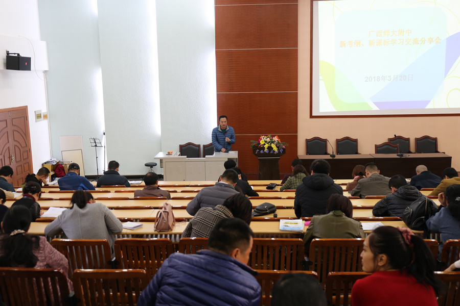 2018年3月20日下午,在教务处的组织下我校全体教职工集中阶梯教室举行了“新考纲、新课标”学习交流分享会。