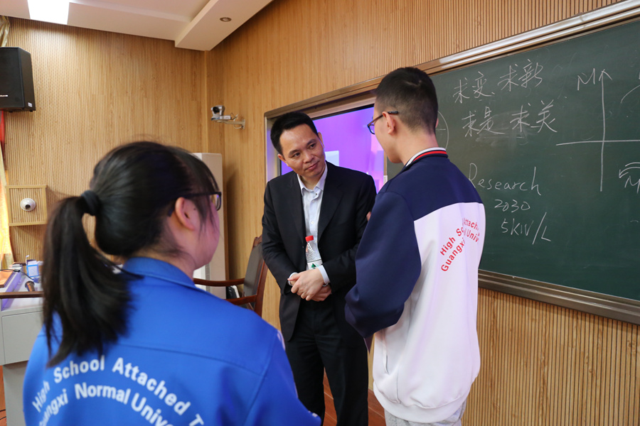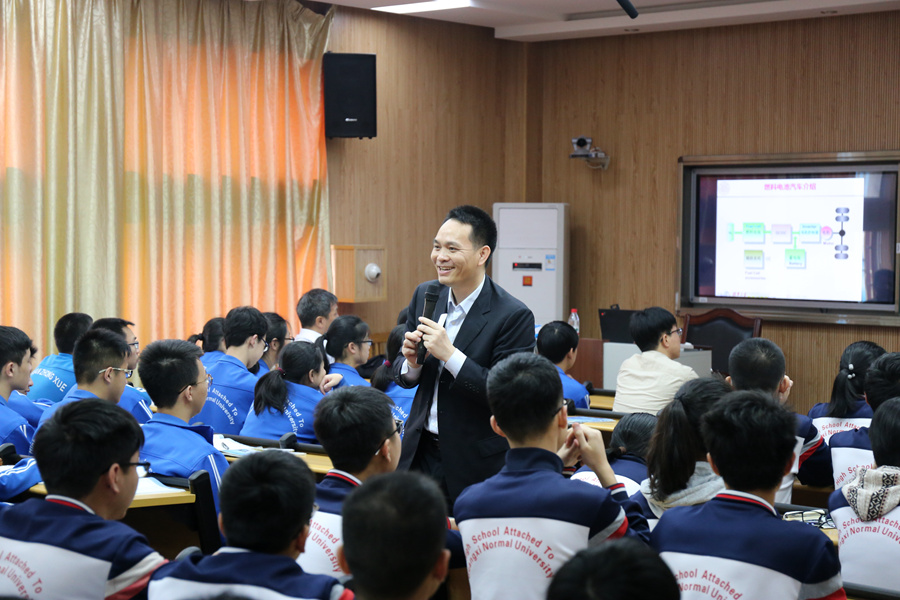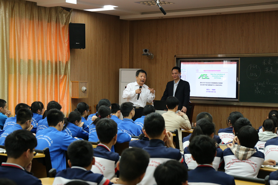 2018年4月12日上午,清华大学李建秋教授在清华大学刘庆龙教授的陪同下,为我校高一、高二尖子生在远程录播室开展了一次主题为:“新能源和智能车辆发展趋势”的科技讲座,部分老师也听取了李教授的讲座。