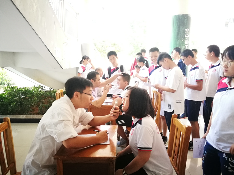 此次健康体检主要包括高一新生抽血查肝功能,以及常规体检检查学生身高、体重、血压、肺活量、视力、口腔、内外科等七项目。本次体检工作得到校领导的高度重视和老师们的大力支持,学校对体检工作进行了专项部署,当日体检过程井然有序,学生积极配合,医生认真负责,体检工作圆满结束。