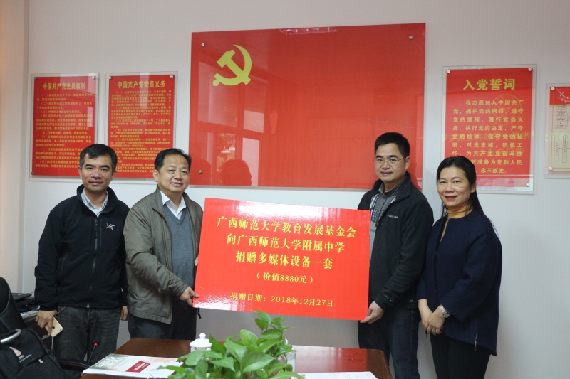 广西师范大学教育发展基金会一直关注并支持附中的发展,此前,为支持附中党建工作捐赠了近万元的多媒体设备,用于建设附中“党员之家”。(图/文: 黄义强 审核:李文伟 编辑:黄义强)