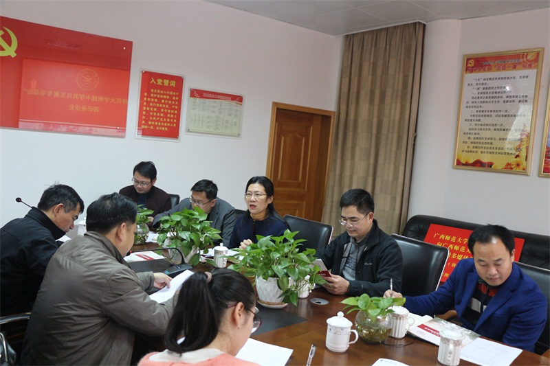 3月13日上午,广西师范大学党委委员、教育发展基金会理事长何小明,校友会/基金会副秘书长罗元一行莅临我校调研指导工作。我校李林波校长、党委王忠英书记、校办主任梁德活、国际部主任兼工会主席李文伟、校办副主任张忠安参加了调研座谈会。
