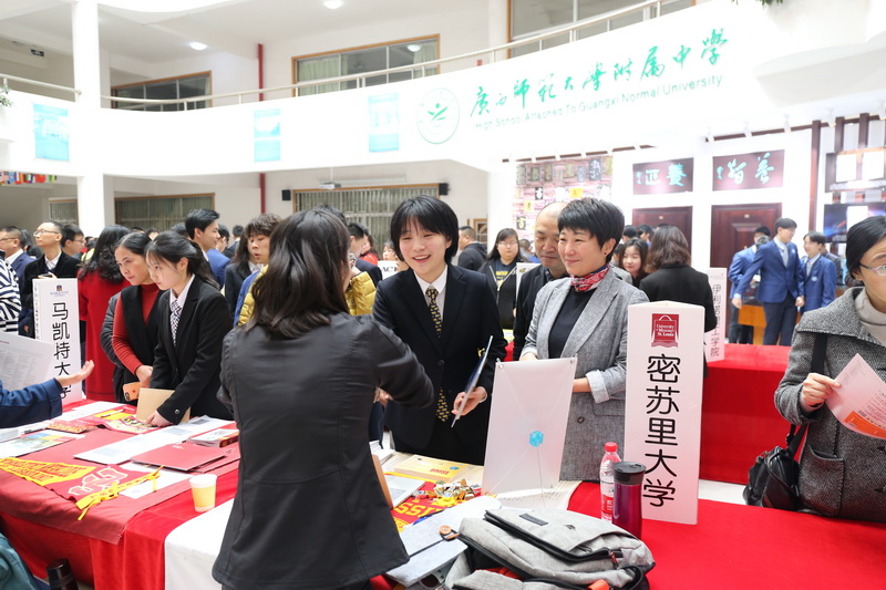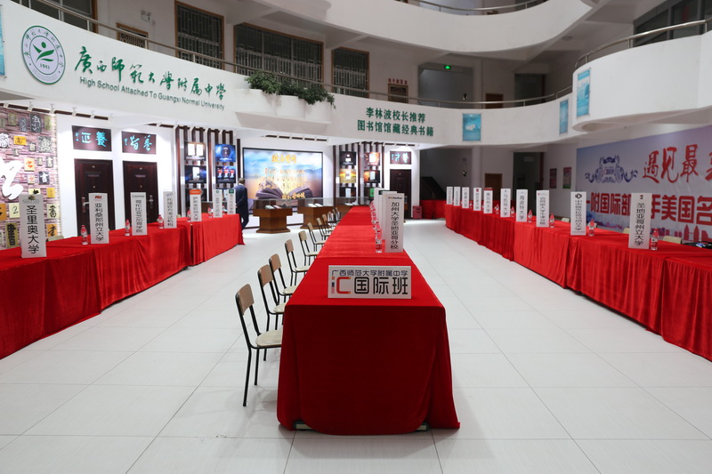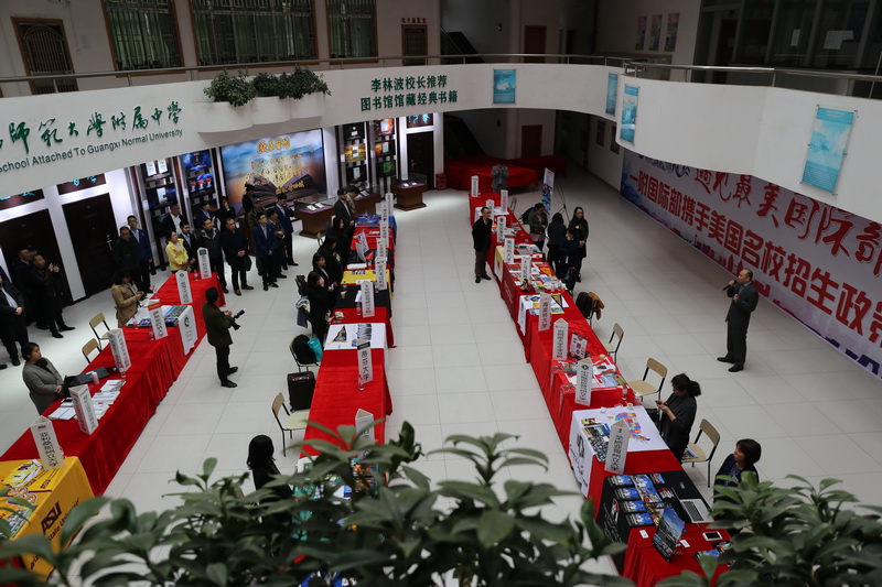 3月15日上午,2019年美国大学精品教育展暨招生政策讲解会在广西师大附属中学国际部(简称:一附国际部)成功举办。美国25所顶尖名校招生代表及托福、ACT官方机构莅临一附国际部,李林波校长、王忠英书记和王华奇副校长出席了活动开幕式。