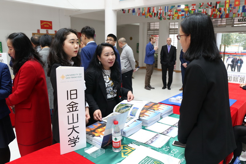 在美国驻广州总领事馆的支持下,来自美国的包括加州大学圣地亚哥分校(世界排名第16位)、南加州大学(世界排名第16位)、辛辛那提大学(全美公立研究型大学中排名第25位)、迈阿密大学牛津分校(美国公立TOP30顶尖名校)、马凯特大学(美国大学第48位)、亚利桑那州立大学(美国最具创新力大学)等学校在内的25所顶尖名校和托福、ACT考试机构派出官方的招生代表,与一附国际部学生和家长进行面对面的交流沟通。当天的咨询会一开始,各大高校展位前就被围堵得水泄不通。